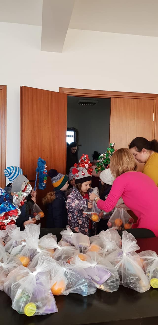 Prescolarii de la Gradinita Petresti au venit azi la sediul Primariei, pentru a ne colinda, acestia fiind insotiti de doamnele educatoare, iar la sfarsitul acestor colinde acestia au primit cate un dar.
